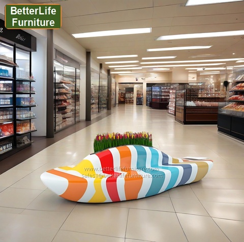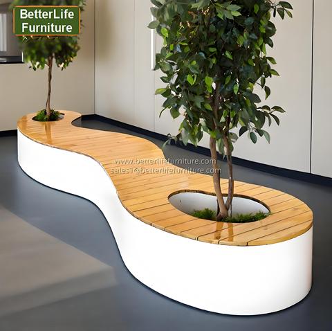 A-Taburete en forma de S con maceta Centro comercial Asientos Decoración de maceta grande en centros comerciales