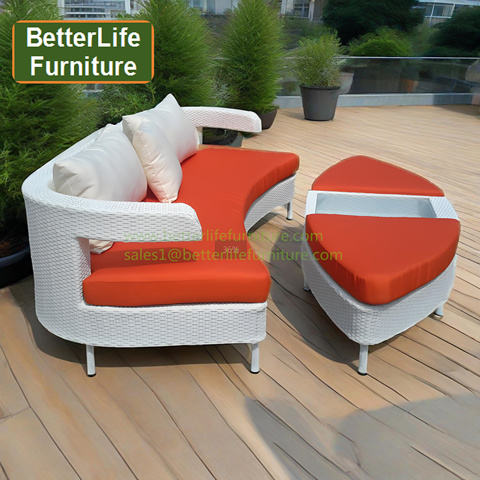 Sofá otomano impermeable para ocio sofá cama PE mimbre patio conjunto de sofá de mimbre con reposapiés